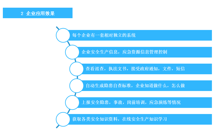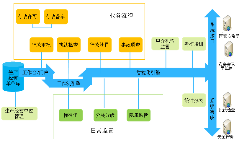 依托國家和地方政務信息資源,建成覆蓋全省各級安全生產監管部門、各級安委會成員單位之間互聯互通的信息網絡平臺和安全,本系統將建立統一的企業信息服務交互出口,向企業采集相關信息,并提供安監信息服務,實現隱患排查治理、監管監察、應急救援等業務工作的數字化、流程化、網絡化和智能化管理。建立資源共享、應急協同機制,實現安監系統與安委會成員單位之間的資源共建共享,信息互通,技術相互支持、展開聯合應急行動、共同應急處置,從而進一步提高應急反應速度和應急處置能力,有效降低和減少重特大安全生產事故和其他突發事件帶來的影響和損失。