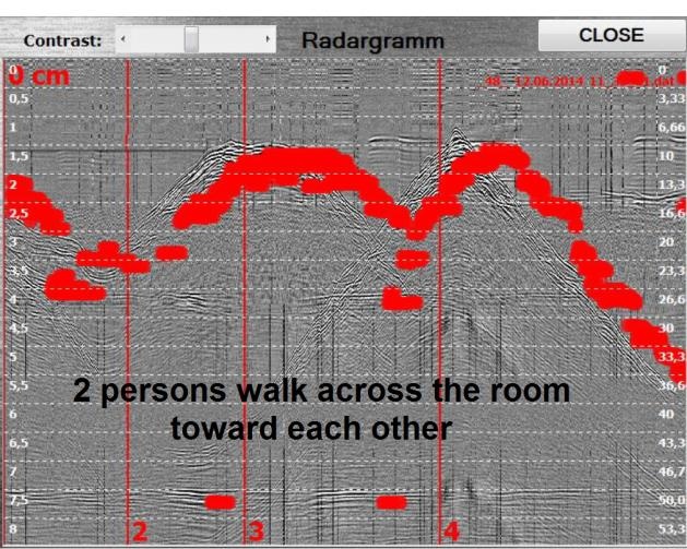 該裝置的操作原理是操作者將天線模塊導(dǎo)向墻壁。 然后即可在計算機(jī)屏幕上觀察當(dāng)物體在墻后移動時反射信號的雷達(dá)圖的變化。