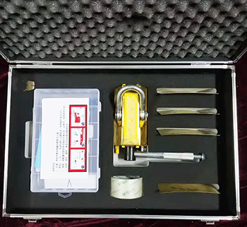 表面采用防爆鋁青銅材質(zhì),內(nèi)部利用超強(qiáng)永磁體對(duì)鋼鐵容器的吸附力,通過操縱手柄控制工作面上的磁通量,吸住泄漏的有磁金屬表面,達(dá)到工具和泄漏本體之間的壓合和釋放。仿形壓片,是在墊在磁壓堵漏器本體與泄漏口之間的薄板,用它可彌補(bǔ)二者之間的空隙,減小磁阻,改善堵漏膠的分布狀態(tài)。快速堵漏膠調(diào)均勻后堆向泄漏口,同時(shí)扳動(dòng)通磁手柄,可阻止內(nèi)壓液體流出,讓膠體有時(shí)間凝固,數(shù)分鐘內(nèi)膠固化后,堵漏即告完成。堵漏膠和密封劑能承受水、油、液化氣、30%硫酸、30%鹽酸、氫氧化鈉、飽和氯化鈉溶液的侵蝕。
