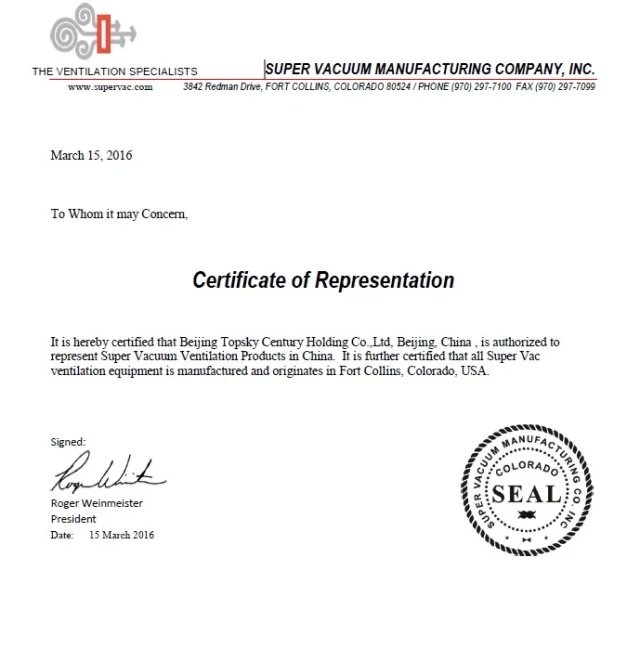 美國SUPER公司正式授權北京凌天世紀控股股份有限公司作為其機動排煙機,水驅動排煙機,電池驅動排煙機在華的總代理。 SUPER是世界知名消防排煙裝備制造商。