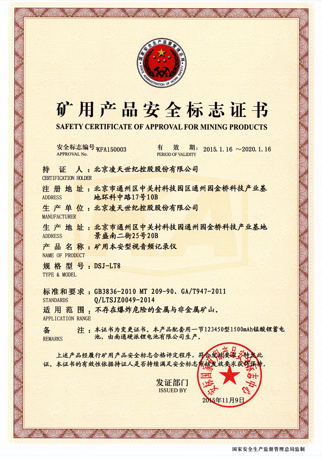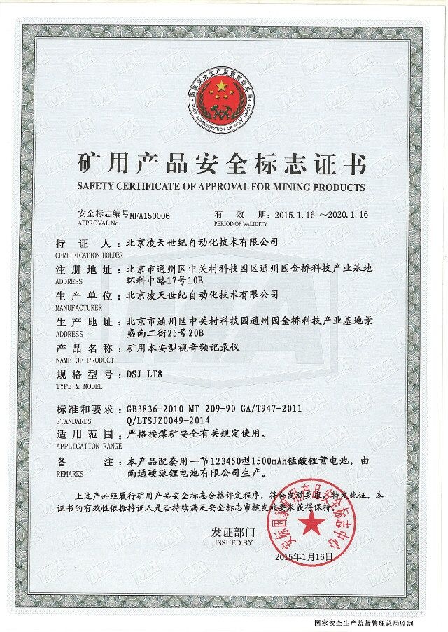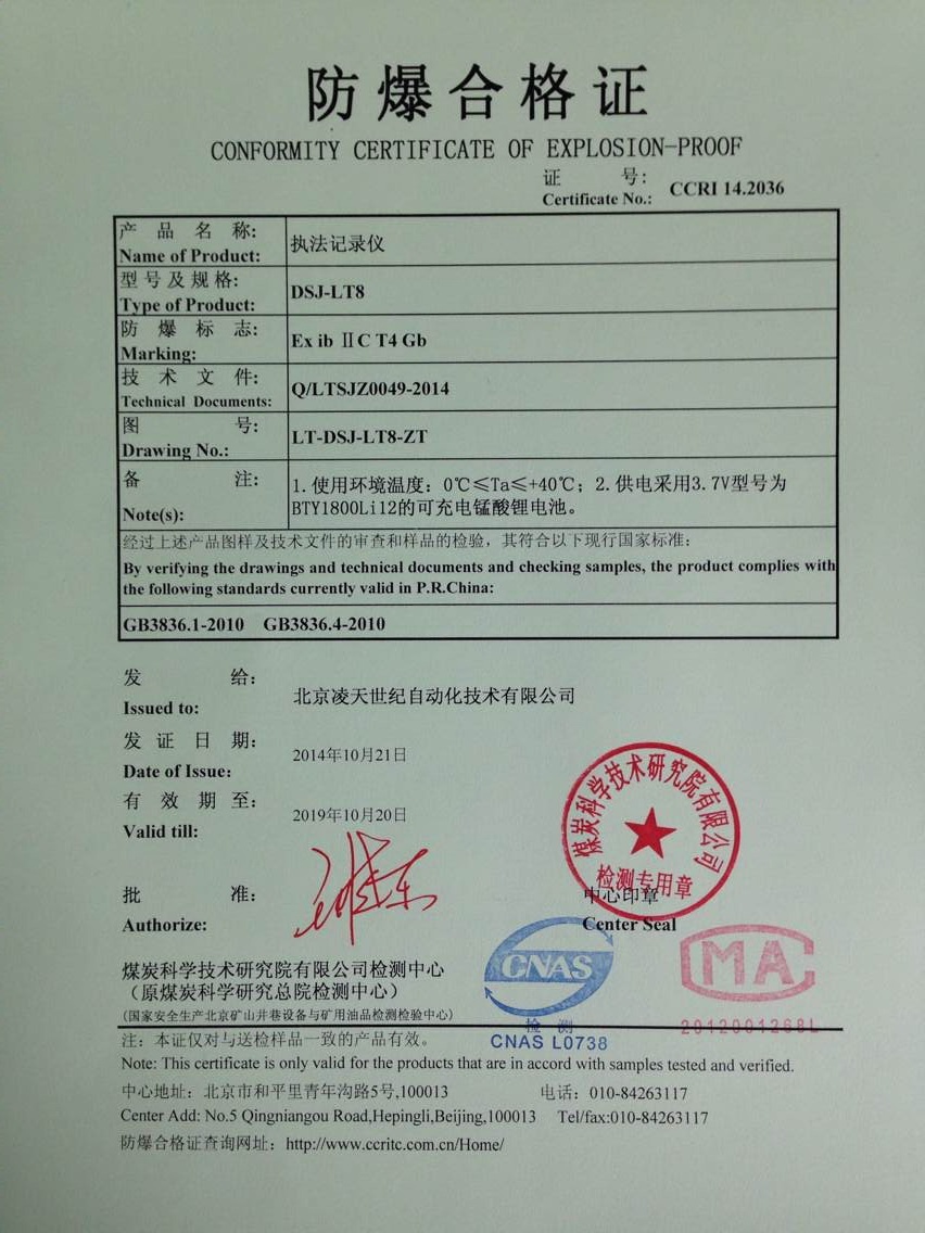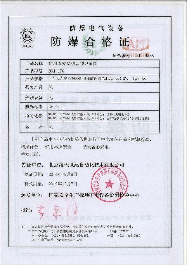 北京凌天防爆執法記錄儀取得3c強制性認證、化工防爆、煤礦防爆、MA