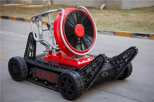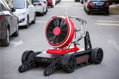消防排煙偵察機器人采用履帶+擺臂+輪式的底盤設計,裝配大功率水驅動排煙機。水霧噴射裝置,形成霧化效果。消防排煙機器人在救援當中可深入災害現場執行排煙降塵、冷卻、送風、降低熱輻射等多種作業。