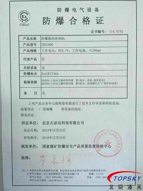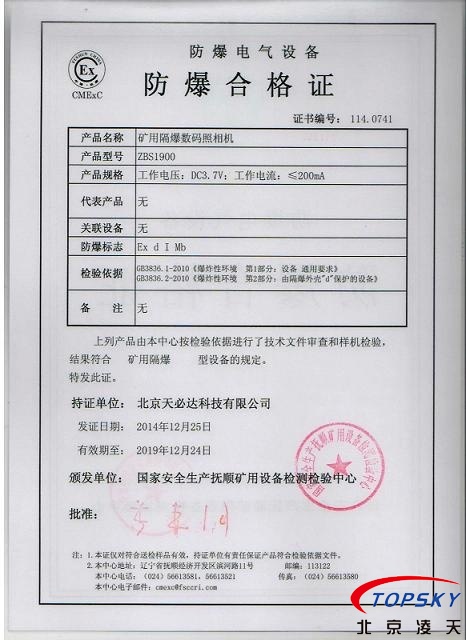 12、提供煤安標(biāo)志證書、礦山防爆證書(Exd I Mb),化工防爆證書(Exd IICT4 Gb )證書原件。