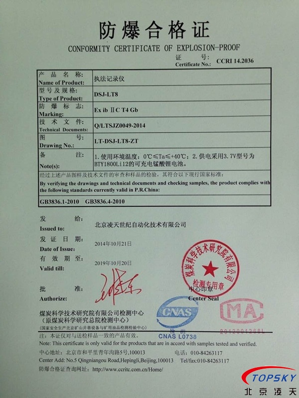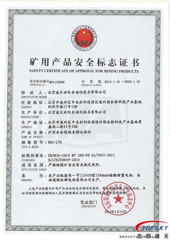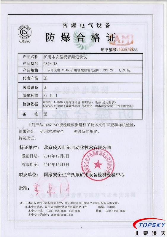 DSJ-LT8防爆執法記錄儀取得煤安認證
