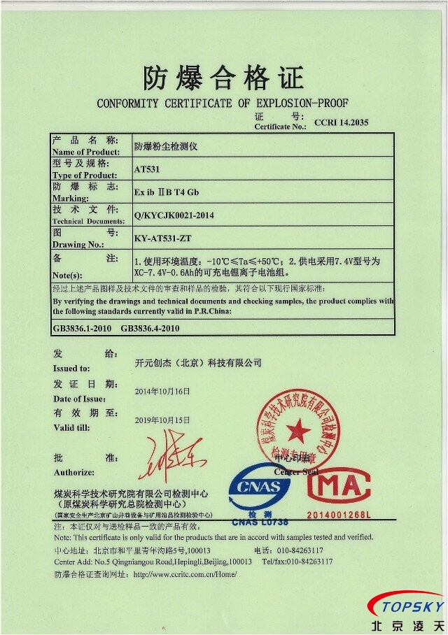 可報警、泵吸式粉塵檢測儀取得防爆認證