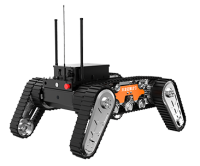 1300底盤主要是用來搭載其它智能裝備,如機械臂、云臺、消防炮等,底盤采用履帶結構,采用前后4擺臂+履帶的結構形式,履帶和擺臂適合復雜地形,可以提高越障性能。可工作于惡劣環境當中,能適應各種地形快速作戰部署。