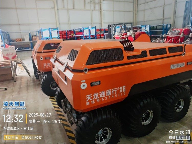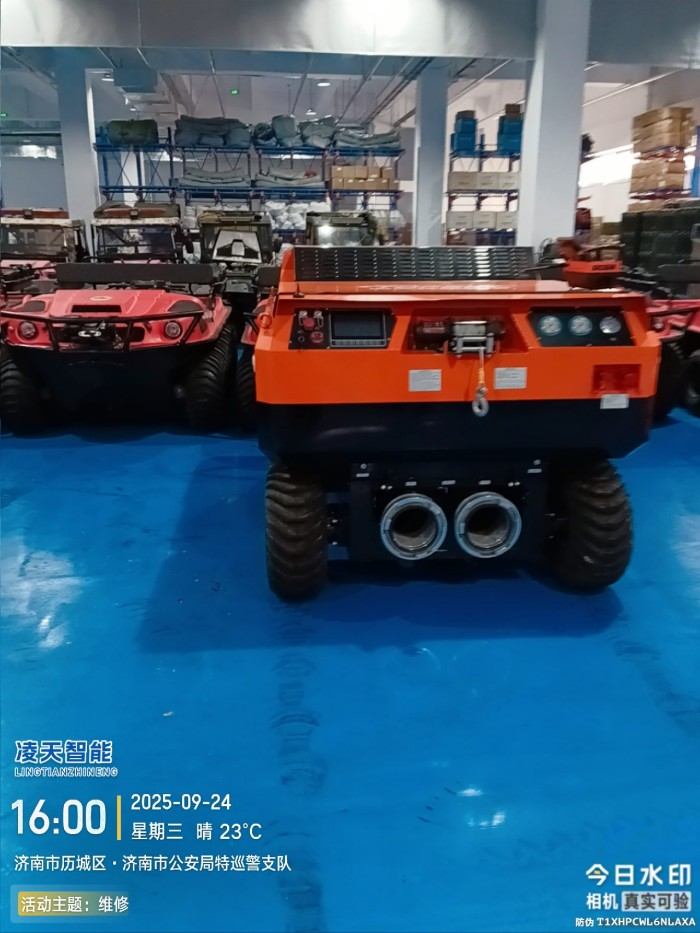 水陸兩棲 采用6×6輪式+履帶底盤,液壓驅動,水陸兩棲,可全地形行駛。可在水上漂浮行進,適合多種救援場景,輪胎+履帶兩用底盤(履帶可快速拆裝)。