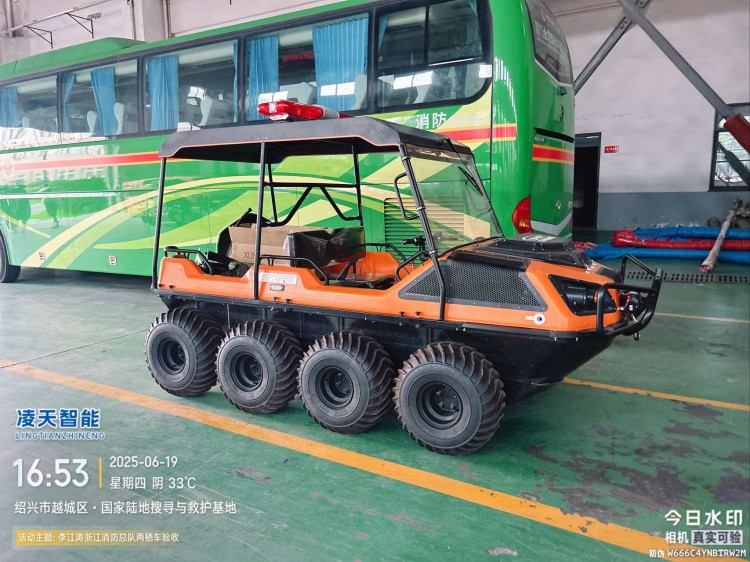 針對水災頻發的地區,水域救援任務必不可少。但往往洪澇災害、城市內澇往往伴隨著惡劣的天氣和崎嶇的地形,沖鋒舟需要多次搭載不同交通工具并數次轉移,水陸兩棲全地形車可以輕松通過水淹、泥濘、沼澤等環境,無需人力搬運,實現陸地駕駛和水中行走自由切換,以最快的時效抵達現場實施救援。