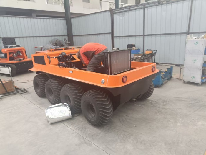 在復雜惡劣的地形條件和自然環境下,水陸兩棲全地形車可以讓搜救隊員和攜帶的救援裝備快速到達救援現場,減少徒步帶來提供消耗,完成最后一公里最好五分鐘緊急救援任務。水陸兩棲全地形車可配備點到絞盤、救援擔架組件、探照燈、警示燈、警報器、脫鉤、破拆工具等裝備, 給救援團隊提供救援保障,更安全的解救傷員和疏散群眾。