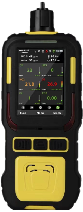 無線復合氣體探測儀(以下簡稱探測儀)支持二十多種智能氣體傳感器,可同時連續檢測5種氣體的濃度(氣體種類可自由組合系統智能識別)、粉塵濃度(PM2.5、PM10)、核輻射、溫濕度。將采集到的氣體數據、GPS位置、粉塵濃度、核輻射、溫濕度等數據通過4G上傳至監管后臺實現無線管理;探測儀也可以實現現場實時數據一鍵打印功能。探測儀具有氣體濃度調校標定、濃度值超限報警功能、STEL超限報警和TWA超限報警,一旦設備采集數據濃度值超限,設備立即開啟聲光振動報警進行警示,并將此時數據同步上傳至平臺。可將多臺探測儀的監測、監控信息上傳,并建立特殊作業場所多功能監測監控系統平臺,保障作業人員的安全。采用新一代主流外觀設計,美觀耐用。