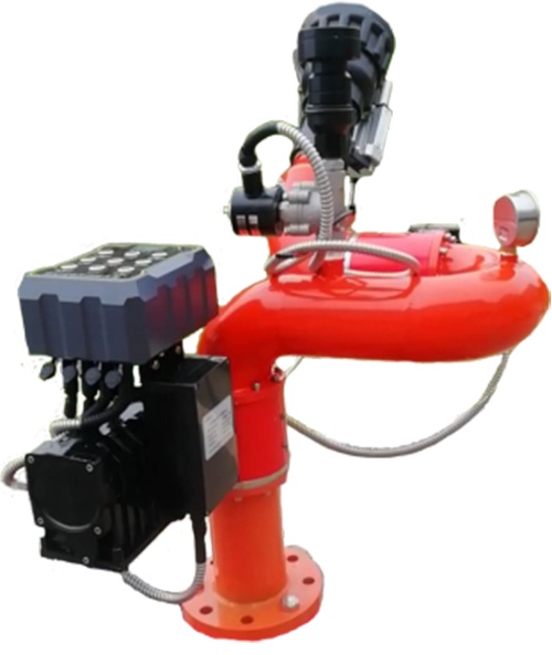 水炮頭的最大霧化角度可達120°,使得水炮的霧化噴射范圍更大,為大面積給火場降溫提供了更大幫助,同時,霧化的水霧顆粒可以快速汽化隔絕火場周圍的空氣,達到切斷燃燒要素快速滅火的目的
